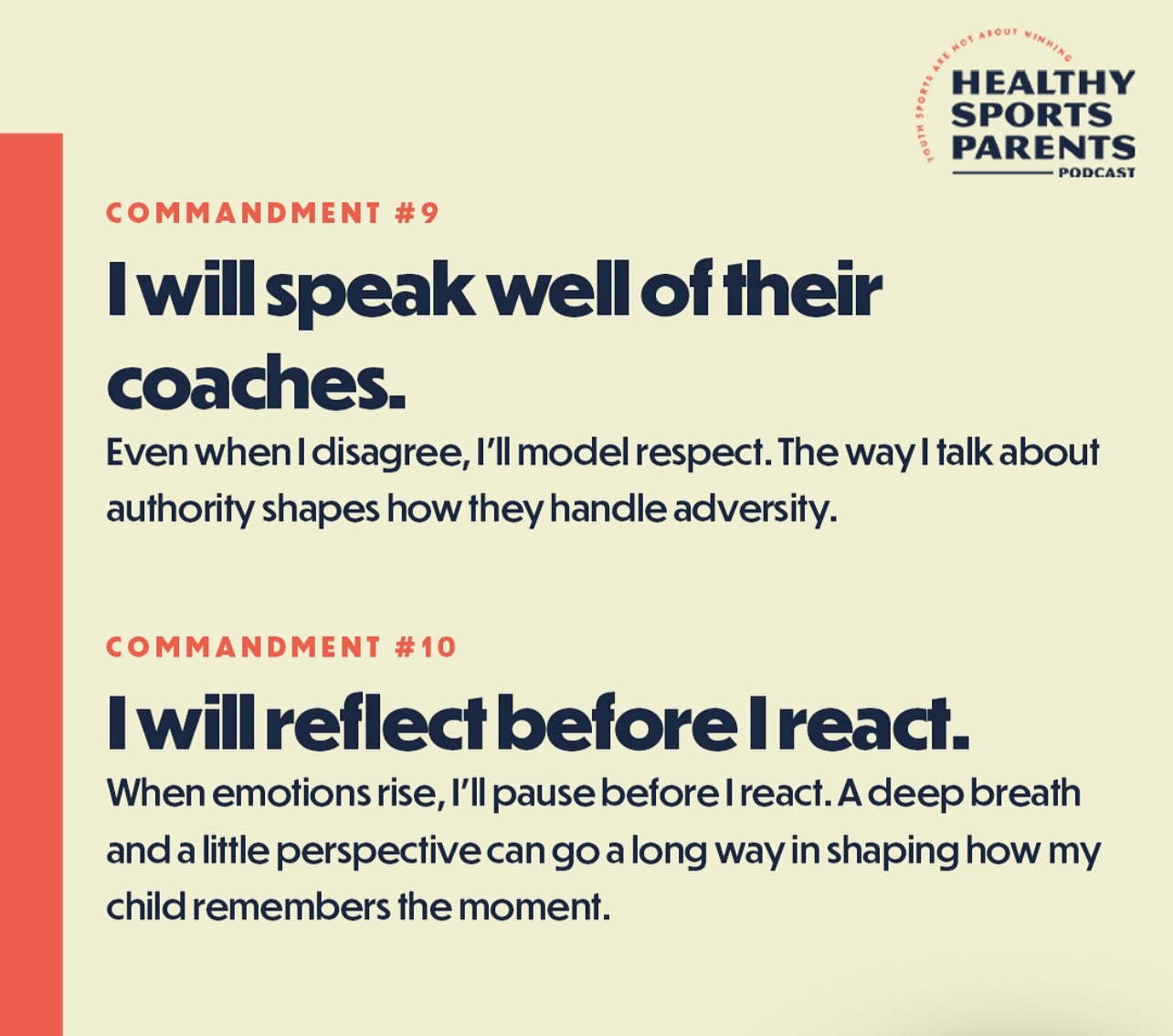 The below provided by Healthy Sports Parents outlines these expectations with 10 simple guidelines.